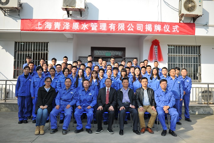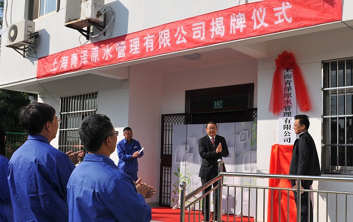 在全体员工的注视和掌声中,原水公司总经理王海亮和原水公司副总经理李国平共同为青泽原水公司揭牌,宣告了上海青泽原水管理有限公司的正式成立。